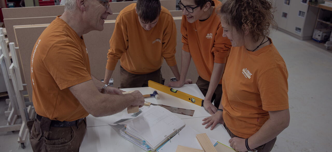 Wir danken Martin Meier (2. v. L.) und Stefan Käser (2. v. R.) herzlich für ihre langjährige Treue, ihr Engagement und ihre Leidenschaft für unseren Beruf und unser Unternehmen. Sie sind ein wesentlicher Teil der Reise und des Erfolgs unserer Schreinerei!