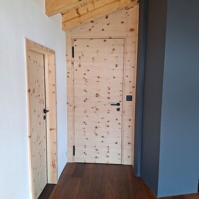 - Wohnungseingangstüre: Innenseite in Arve furniert und Aussenseite in Föhre furniert