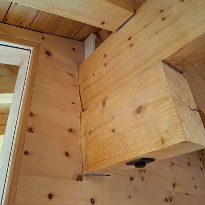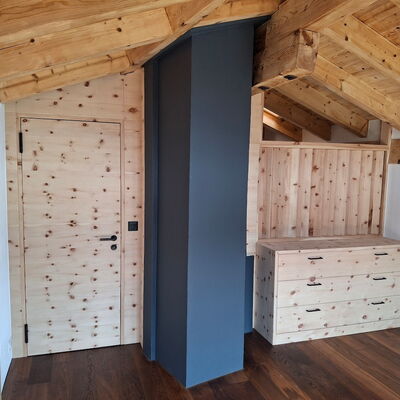 - Trennwand Masterbedroom: Arve furniert, Arve Massivholz, Unterkonstruktion Fichte Massivholz