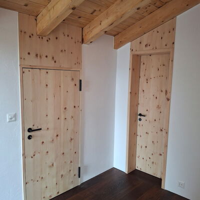 - Wohnungseingangstüre: Innenseite in Arve furniert und Aussenseite in Föhre furniert