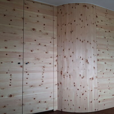 - Trennwand Masterbedroom: Arve furniert, Arve Massivholz, Unterkonstruktion Fichte Massivholz