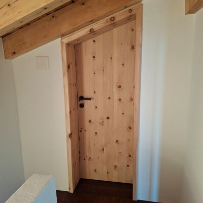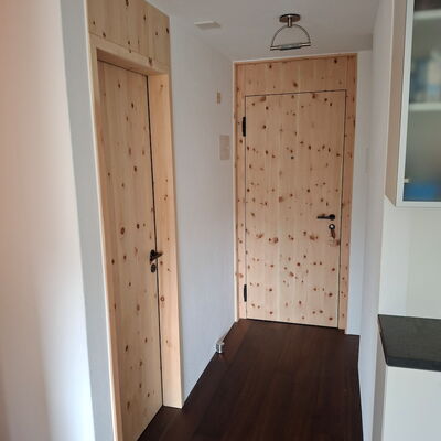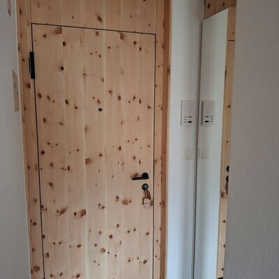 - Wohnungseingangstüre: Innenseite in Arve furniert und Aussenseite in Föhre furniert